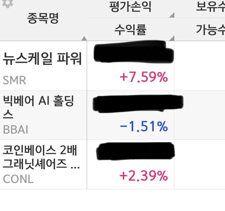 현재 나의 잔고는 빅베어AI, 코인베이스 레버리지, 뉴스케일파워 이렇게 세 종목을 분할해서 들고 있다. 세 종목 모두 위의 기준을 적용해서 지난주 목요일 금요일에 매수했다.