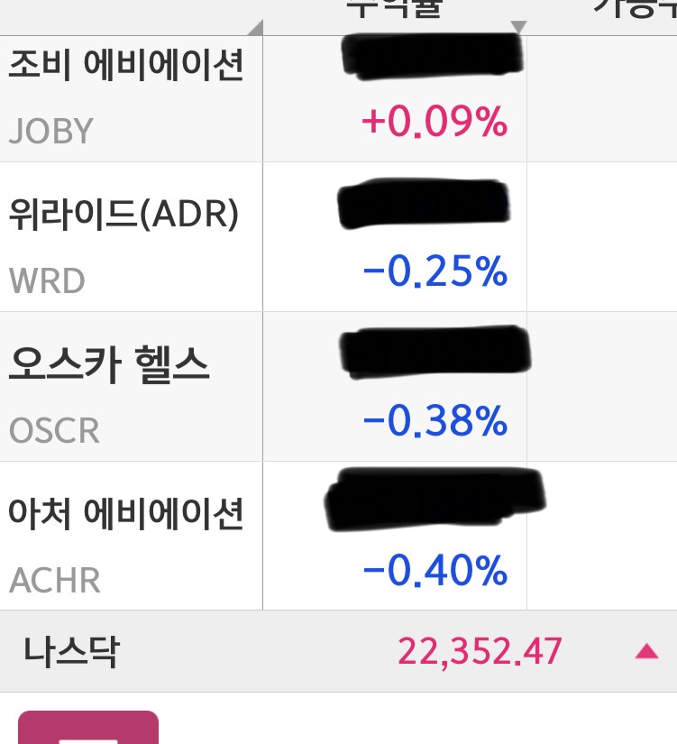 추가적으로 들어간 종목은 오스카헬스, 조비 에비에이션과 위라이드이다. 우선 오스카 헬스는 차트상 20일선 지지를 받고 있어서 매매헀다. 조비, 아처는 사실 경쟁사여서 비교적 사업성이 안정적인 조비만 매매하려고 했지만 아쳐 에비에이션은 현재 이평선들이 매우 갭이 좁은 상태로 붙어있다. 골든 크로스가 한번에 일어날 수 있는 환경인데, 이런 차트에 매수해보고 싶어서 매수헀다. 위라이드는 아주 긴 횡보장에서 반등을 시작헀다. 방금 말한 이평선이 밀접하게 위치한 상태에서 한번에 20일,60일선을 뚫고 올라가서 200일선 라인까지는 상방이 열려있다고 판단하여 매수헀다. 이상이다.